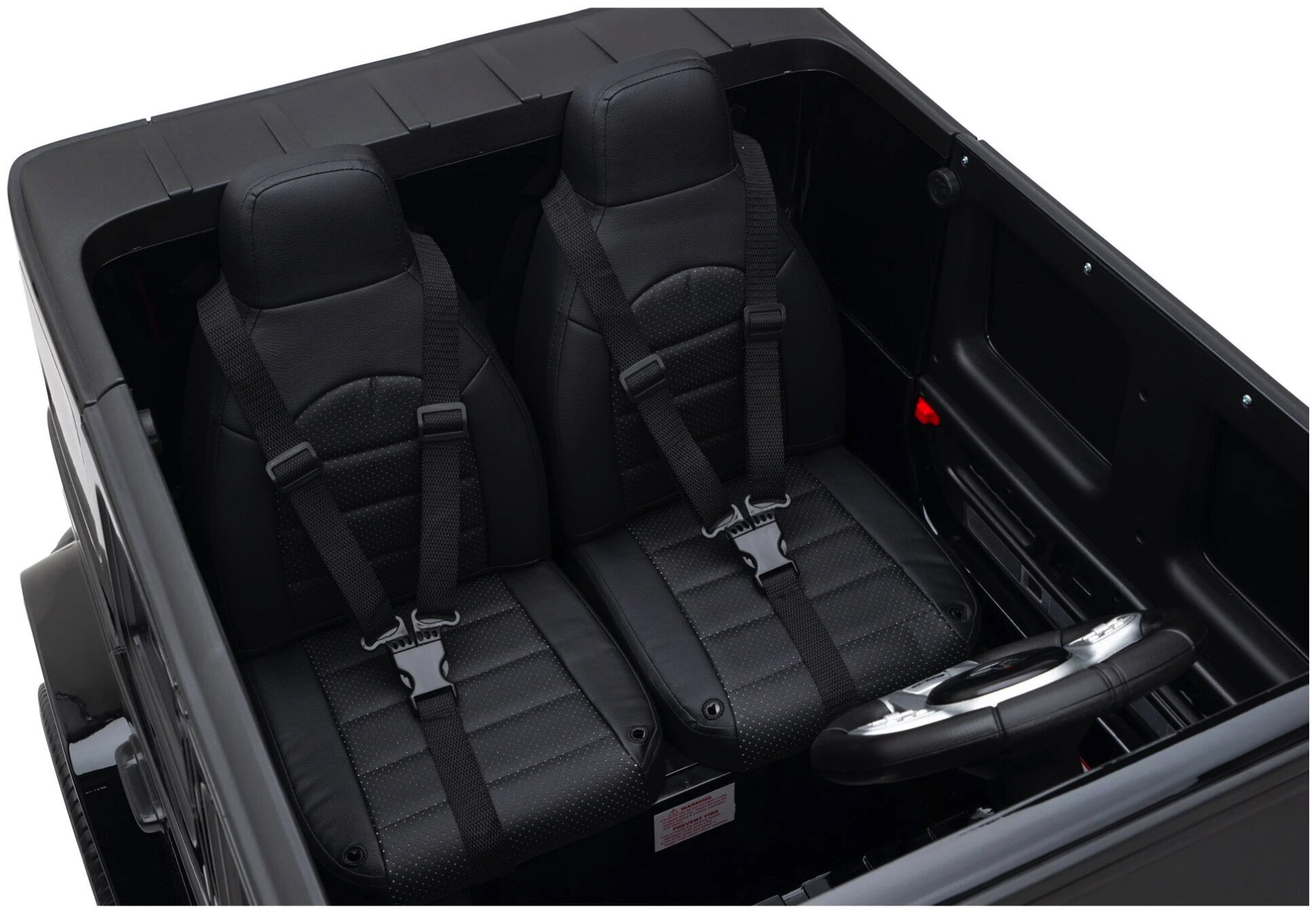 Dankzij de 4 krachtige 24 volt motoren komt deze robuuste G-klasse niet vast te staan en haalt een maximale snelheid van 8 km per uur. Deze 2-zits accu voertuig is geproduceerd onder licentie van MERCEDES-BENZ.