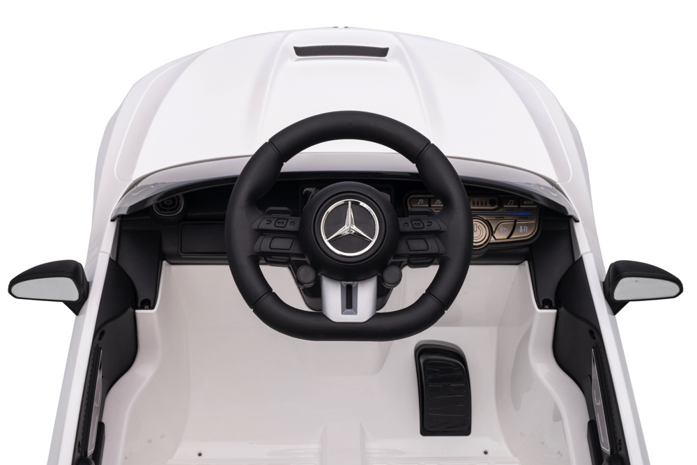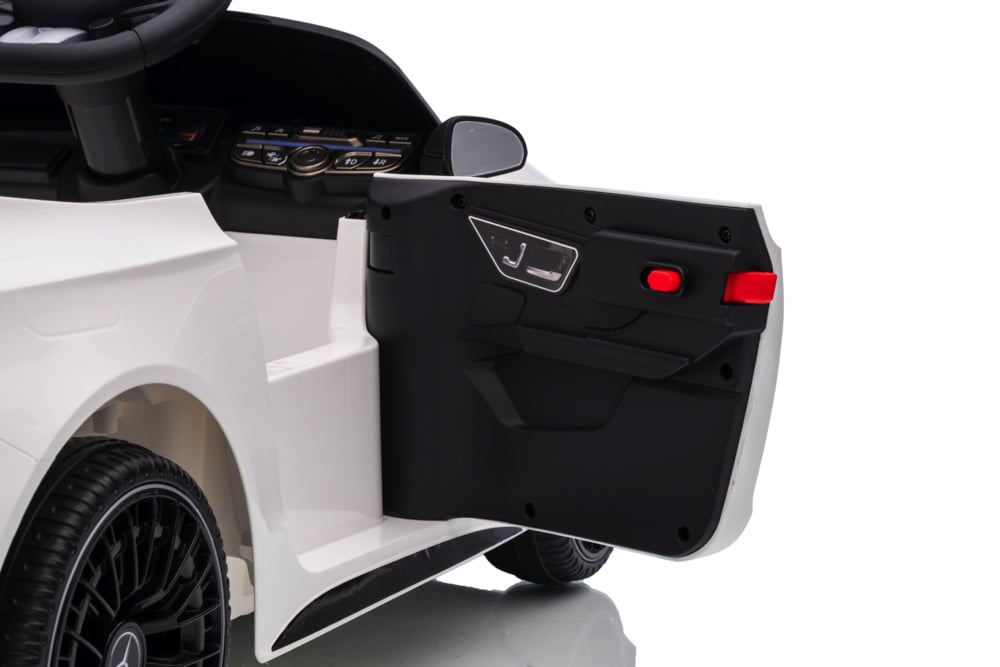 Met zijn sportieve AMG-details, strakke vormen, LED-verlichting en geluidseffecten lijkt deze kinderauto sterk op een echte Mercedes. Kinderen stappen in via de deuren die echt open kunnen. Zodra ze de auto starten, horen ze een realistisch motorgeluid dat meteen voor extra beleving zorgt.