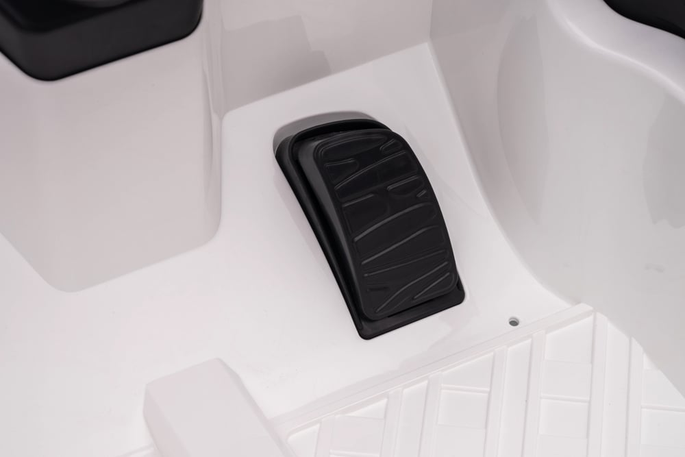Deze kinderauto is voorzien van 4 aandrijvingen (twee voor en twee achter), waardoor hij soepel rijdt. De snelheid is verstelbaar in 3 standen tot maximaal 5 km per uur. De volledig rubberen banden en geveerde wielen zorgen voor een extra comfortabele rit.