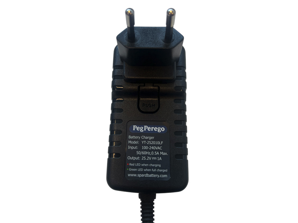 Peg-Perego 24 volt oplader voor lithium accu’s. De oplader is geschikt voor John Deere en andere merken van Peg-Perego met een 24 volt lithium accu.