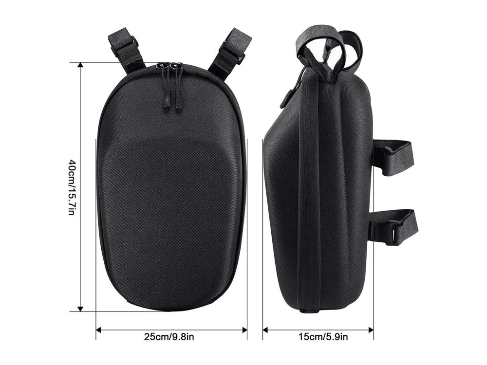 Universele tasje geschikt voor allerlei modellen elektrische steppen. De tas is eenvoudig met klittenbanden vast te zetten.